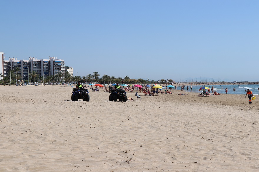En total, 8 agentes, 2 oficiales y 1 inspector ya velan por la seguridad en las playas de Sagunto, tanto en la de Puerto de Sagunto como en Almardá, Corinto y Malvarrosa, realizando patrullas a pie y en quad tanto por la arena como por el paseo marítimo, y prestando servicio en el retén. Las labores que llevan a cabo son de control de accesos, de colaboración con los servicios de Salvamento y Socorrismo, de seguridad ciudadana en playas, de atención e información a la ciudadanía, así como tráfico e intervenciones en accidentes dentro de la zona de influencia.