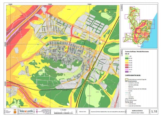 El Plan Acústico Municipal ha estado expuesto públicamente en la web del Ayuntamiento de Sagunto durante un mes para que todos los vecinos y vecinas pudieran realizar las aportaciones y medidas pertinentes. Este plan consta de dos figuras, en primer lugar, el mapa acústico que está disponible públicamente para que la población pueda conocer los índices de calidad acústica de las calles y, en segundo lugar, la propuesta de unos programas de actuación en cuanto a medidas que puedan ayudar a obtener unos mejores niveles sonoros en el municipio.