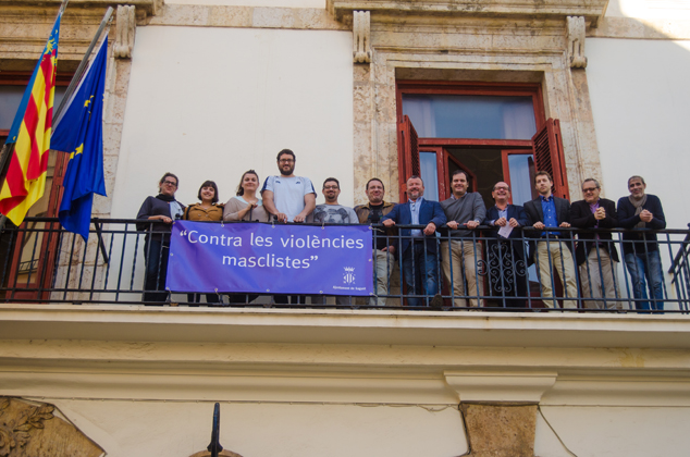 Esta mañana, tanto los partidos miembros del Equipo de Gobierno (Compromís, Esquerra Unida y ADN Morvedre) como los de la Oposición (PP y C's) han asistido a la colocación de la pancarta en la fachada del Ayuntamiento contra la violencia machista. Al acto han sido invitados todos los grupos políticos.