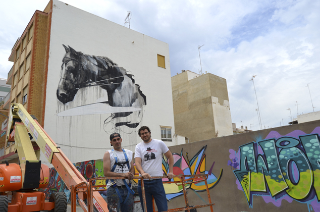El graffitero Mario Mankey y el concejal de Juventud, Guillermo Sampedro