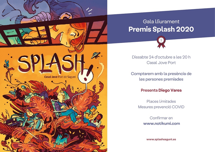 La Jornada Splash arrancará con una charla a las 18 h bajo el título ‘Cómic VS Covid’, con la presencia de los autores premiados y editores. Posteriormente, a partir de las 19 h, autores premiados como Mamen Moreu, Ricardo Vilbor, Max Vento, Pedro Riera, Sagar, Agustín Ferrer o Laura Pérez firmarán ejemplares de sus obras premiadas. A partir de las 20 h tendrá lugar la gala y la entrega de los premios Splash 2020. La entrada es libre, con invitación a través del siguiente enlace.