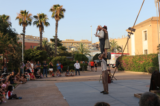 La compañía Voluta Circo ha sido la encargada de inaugurar esta temporada de representaciones con una obra de circo apta para todos los públicos en los jardines del Centro Cívico (Antiguo Sanatorio) de Puerto de Sagunto. Este espectáculo trata de tres personajes invitan a pasar a su casa y traspasar así la entrada que divide la vida pública de la privada. Con esta función se descubre la manera de relacionarse, la incomunicación, los miedos y los bucles que persiguen a una persona a lo largo de su vida.
