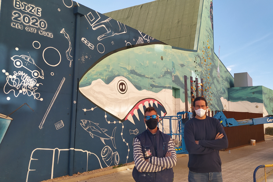 «Salva el mar y sálvate a ti mismo podría ser el lema del mural», añade Bize, uno de los grafiteros locales más reconocidos y con más de 22 años de trayectoria en el mundo del arte urbano. Su obra, muy prolífica, está muy visible en los centros de transformación del municipio así como en los muros y paredes de diferentes localidades.