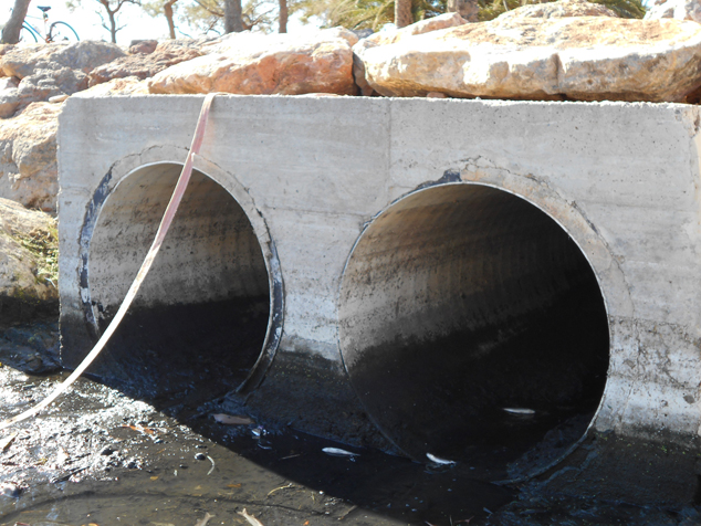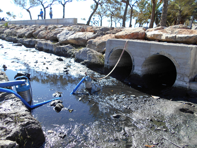 Esto lo corrobora la comprobación de estanquidad en el tramo de pluviales inspeccionado previamente con cámaras de televisión. Además, fotografías tomadas el día de la prueba muestran la presencia de peces, lo cual prueba que el origen del agua no es en ningún caso fecal.