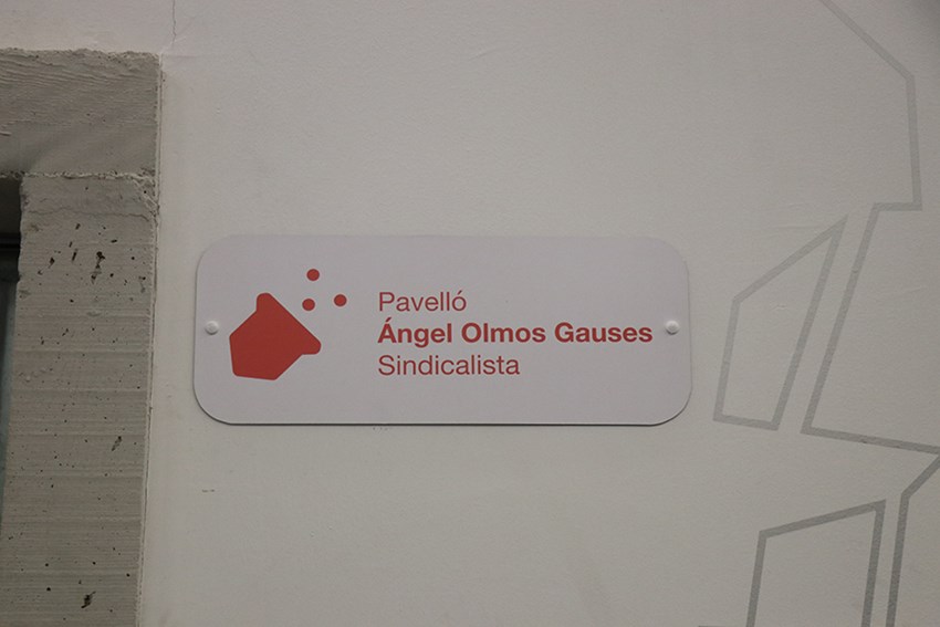 El pabellón para visitantes del Horno Alto Nº2 ya luce la placa con su nuevo nombre: Pabellón Sindicalista Ángel Olmos Gauses, nombre que se le ha otorgado en reconocimiento a la trayectoria del histórico sindicalista de Puerto de Sagunto.