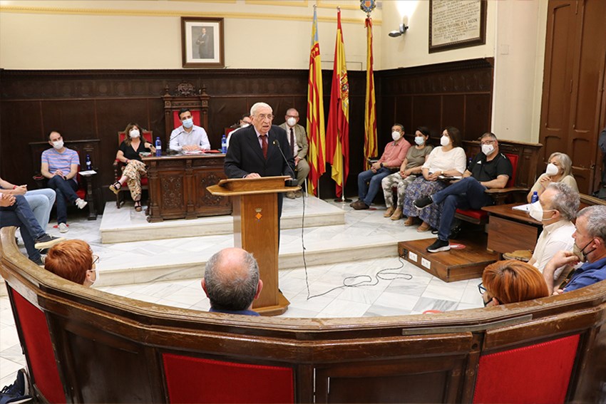 Vicent Vayà, que ha asistido a la sesión plenaria acompañado de su esposa, Vicenta, su hija, Amparo, y demás familiaraes y amistades. Ha agradecido a la Corporación que le conceda este honor por unanimidad: «Muy emocionado y muy agradecido a mi pueblo de Sagunto». También ha dicho que no le pidió a nadie ser saguntino: «Ya me consideraba saguntino en todos mis actos y en toda mi vida. Esto no se pide, esto se gana y lo mejor es haberlo ganado sin saberlo»