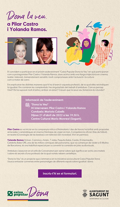 Dona la veu es un proyecto organizado por la iniciativa sociocultural “Caja Popular Mujer” en colaboración con el departamento de Cultura del Ayuntamiento de Sagunto.