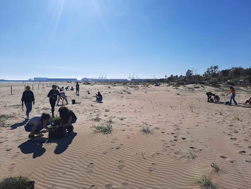 Este curso, por ejemplo, con los institutos de enseñanza secundaria María Moliner y Camp de Morvedre se ha continuado plantando flora dunar autóctona en la playa del Puerto de Sagunto. El reto ha sido restaurar y aumentar un ecosistema tan importante como son las dunas y dotar de más biodiversidad y resiliencia el litoral, para poder hacer frente los temporales y la erosión marítima.