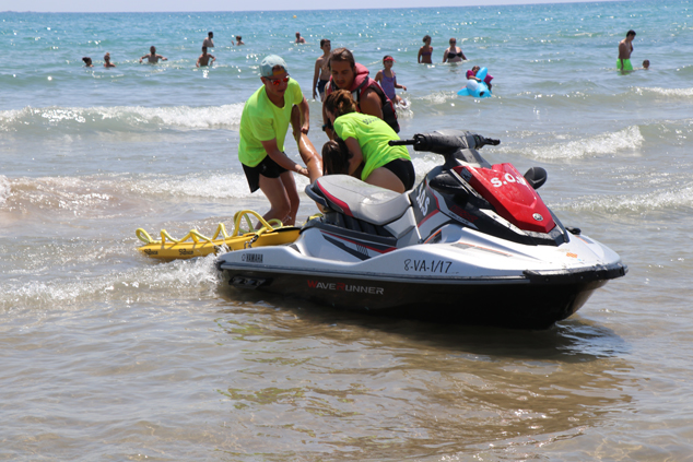 El simulacro ha consistido en el rescate de una víctima que se encontraba totalmente inconsciente en el agua. Una vez ha sido avistada desde la torre de control, tanto el grupo de socorrismo y salvamento marítimo como el dispositivo de policías locales se han coordinado a la perfección para realizar el rescate. La moto acuática del servicio de socorrismo y la embarcación de la Policía Local han logrado rescatar a la víctima y se ha habilitado una zona de seguridad que ha permitido que la moto acuática la trasladara hasta la orilla, donde, entre otras medidas, se le han realizado ejercicios de reanimación cardiopulmonar. Posteriormente, han trasladado a la víctima al hospital con la ambulancia.