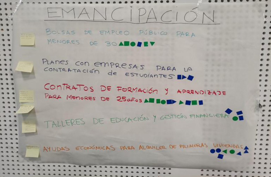 Durante la sesión, los participantes expusieron posibles soluciones a las problemáticas que se plantearon en la anterior quedada, la cual tuvo lugar en diciembre de 2020. Entre las carencias que se encontraban en la ciudad destacaron la falta de lugares de ocio, la escasez de locales de ensayo y salas de estudio, así como de zonas peatonales. También reclamaron la agilización de las obras del futuro IES nº5, el aumento de la oferta de grados superiores y medios en los centros de secundaria, la mejora de los horarios del transporte público y el aumento de carriles bici, entre otras propuestas.