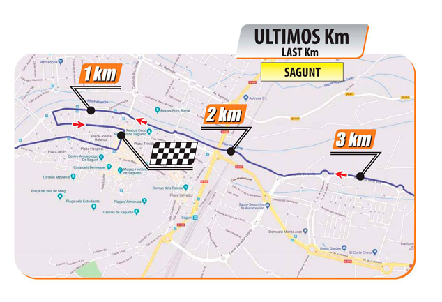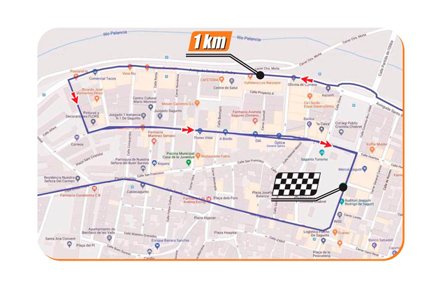 En Sagunto pasará por la avenida Sants de la Pedra, Sant Cristófol, la avenida Dr. Palos, la calle Huertos y la plaza del Cronista Chabret, donde estará ubicada la meta. Al finalizar la prueba, sobre las 14.30 horas, se entregarán los trofeos.