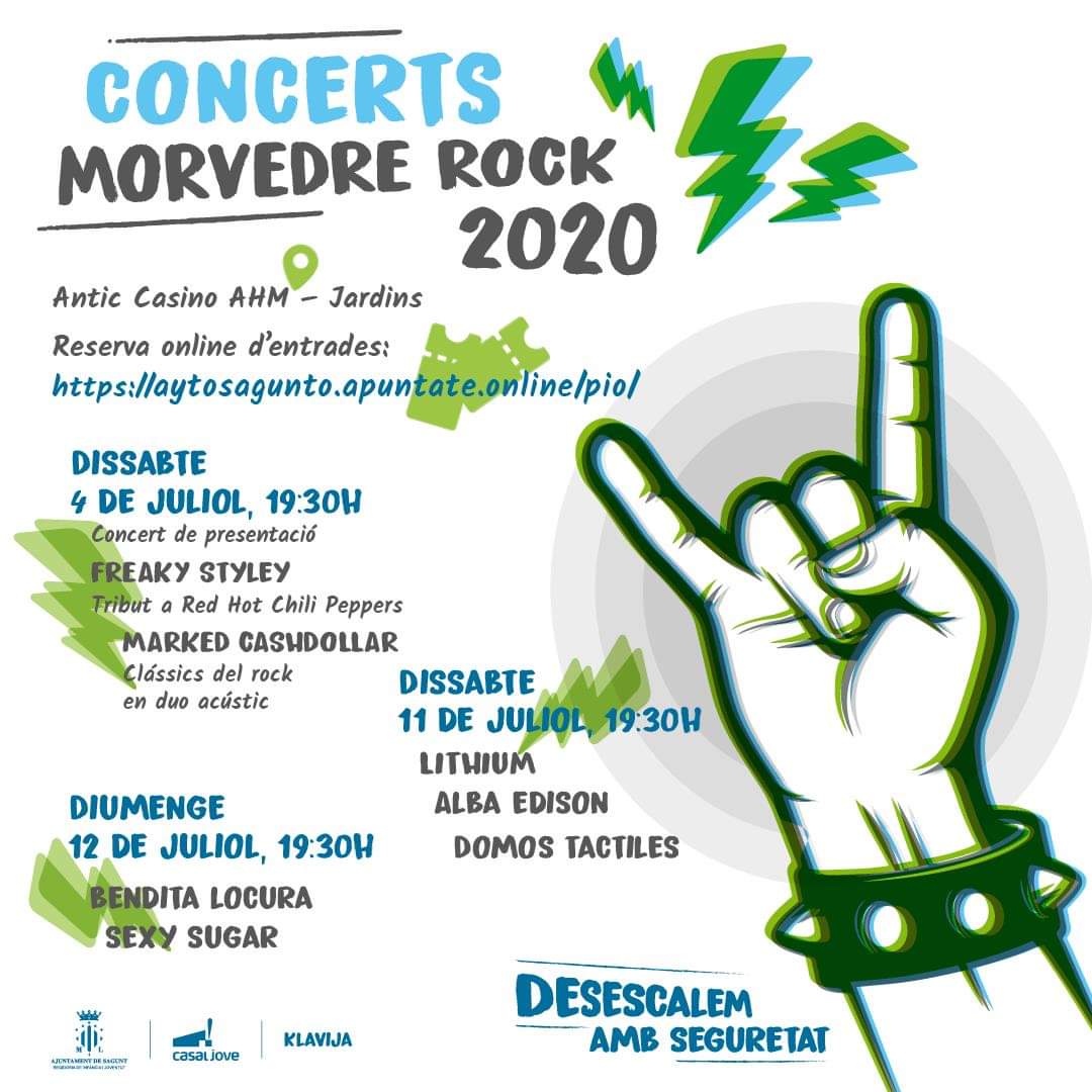 Los jardines del Casino de la Gerencia AHM acogen, por segundo año, los conciertos del certamen Morvedre Rock, dirigido a grupos jóvenes de la comarca del Camp de Morvedre y de la Comunidad Valenciana. Organizado por la Asociación Musico-Cultural Klavija, con el Ayuntamiento de Sagunto a través del departamento de Juventud.
