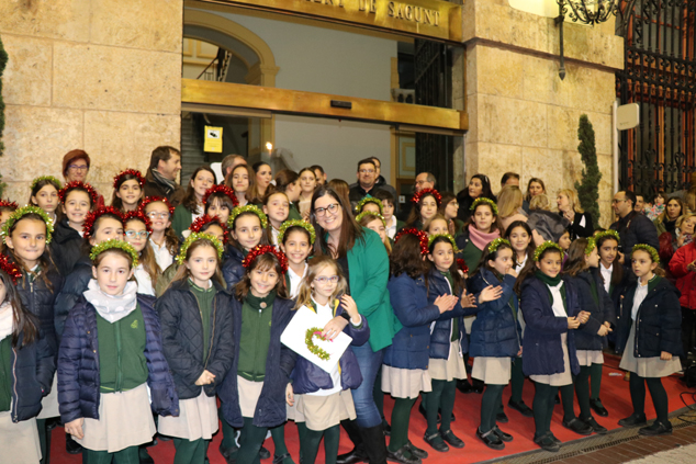 El acto fue amenizado por la Coral del colegio Sant Vicent Ferrer. El evento contó con la presencia de los distintos partidos políticos del municipio, el alcalde de Sagunto, Quico Fernández, las asociaciones de comerciantes y las falleras mayores Paula Marrón e Inés Miret de la junta de la federación de Sagunto y Camp de Morvedre.
