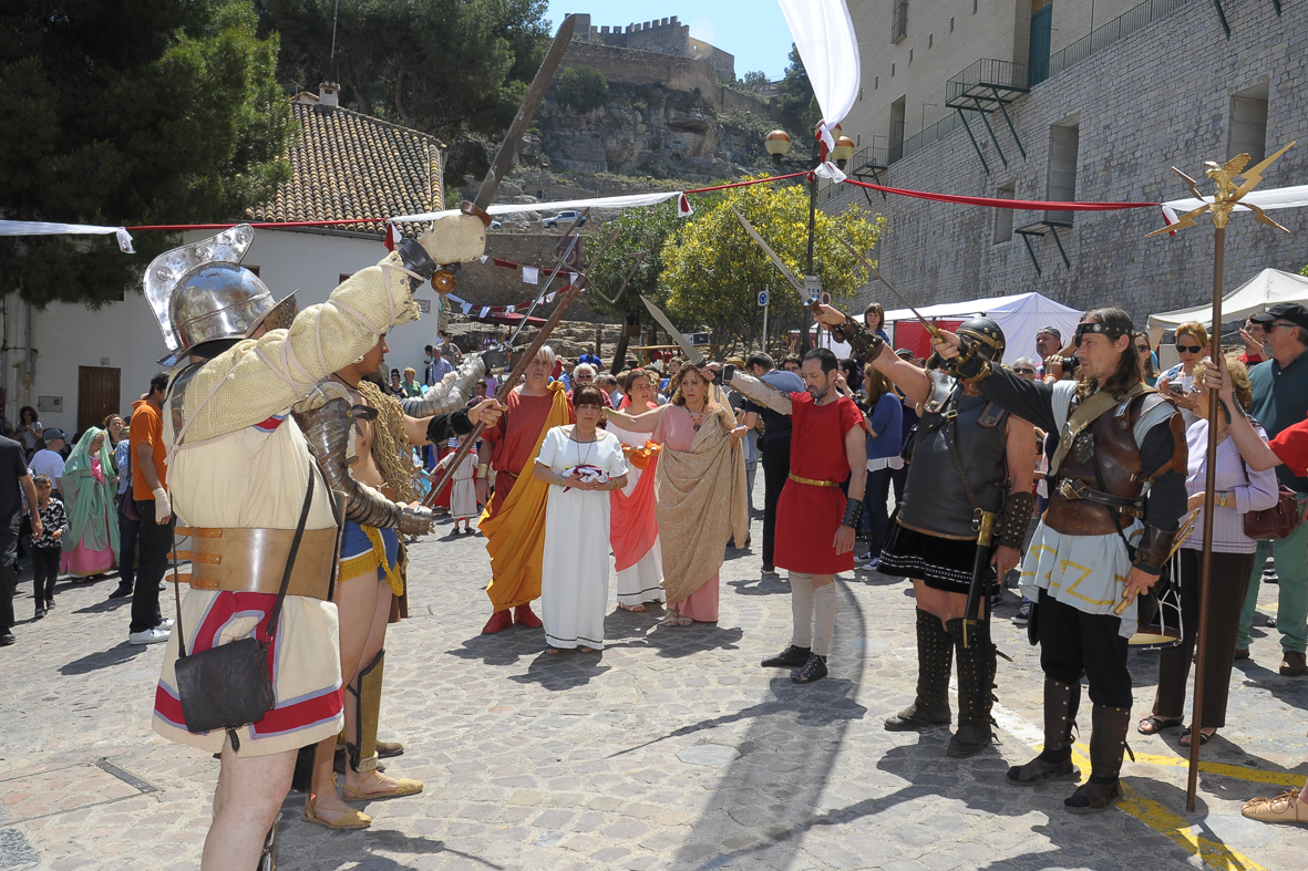 El mercado temático que ha trasladado Sagunto a la época romana durante este fin de semana ha sido todo un éxito de participación. Luchas de gladiadores, desfiles, recreaciones de bodas y juicios romanos, así como puestos de gastronomía típica han sido algunas de las sorpresas que han podido disfrutar vecinos y visitantes. La delegación de Cultura del Ayuntamiento de Sagunto ha organizado esta novedosa iniciativa, en colaboración con la asociación Saguntum Civitas y la empresa Guielandus Dagda.