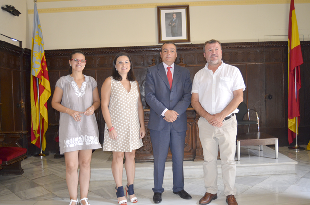 De izqda a dcha: Teresa García, Cristina Plumed, Salvador Navarro y Francesc Fernández Esta mañana, el alcalde de Sagunto, Francesc Fernández, se ha reunido en el Ayuntamiento de Sagunto con el presidente de la Confederación Empresarial Valenciana, CEV, Salvador Navarro, con la presidenta de Asociación de Empresarios del Camp de Morvedre, ASECAM, Cristina Plumed y con la concejal delegada del Área de Gobierno y diputada autonómica, Teresa García.