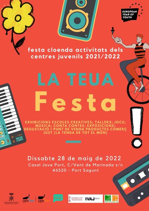 El Departamento de Juventud celebrará este sábado, 28 de mayo, la fiesta de clausura de las actividades de los centros juveniles del presente curso 2021/2022 con una jornada que contará con exhibiciones de las escuelas creativas, talleres, juegos, música, cuentacuentos, exposiciones y degustación y punto de venta de productos de comercio justo.