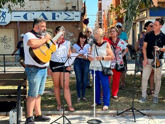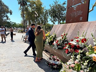 Darío Moreno y Patricia Sánchez hicieron entrega de una corona de flores en nombre del Ayuntamiento de Sagunto. Además de la ofrenda floral, también hubo una interpretación de jotas por parte del Centro Aragonés de Puerto de Sagunto.