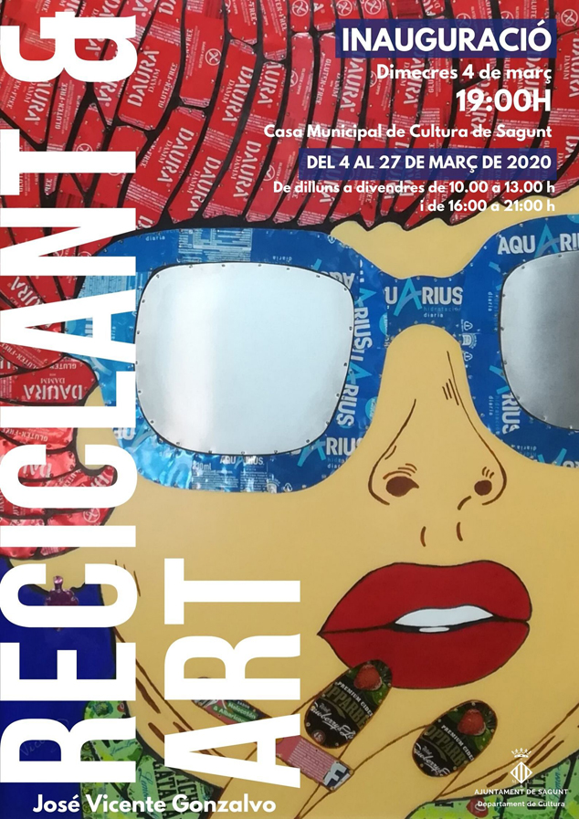 La delegación de Cultura ha organizado para este miércoles 4 de marzo, la inauguración de la exposición Reciclant & Art, de José Vicente Gonzalvo, un artista autodidacta que con este proyecto plástico presenta su trabajo enmarcado en el movimiento artístico de Arte Povera, donde utiliza materiales reciclados como latas de refrescos, cuero, clavos, etc. La inauguración comenzará a las 19.00 horas en la Casa Municipal de Cultura y estará abierta hasta el 27 del mismo mes, en el horario de lunes a viernes de 10 a 13 h, y de 16 a 21 h, de forma gratuita.