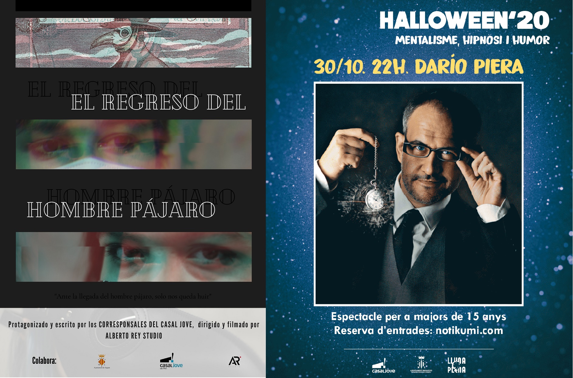 El viernes 23 de octubre, a las 21.30 horas, tendrá lugar la presentación del cortometraje El regreso del Hombre Pájaro, guion y protagonizado por un grupo de Corresponsales, dirigido por Alberto Rey Studio y producido por la Concejalía de Juventud. Esta idea surge de un grupo de corresponsales ante la imposibilidad de realizar el tradicional Túnel del terror. Los protagonistas contarán el trabajo realizado y la experiencia en el Casal Jove.
