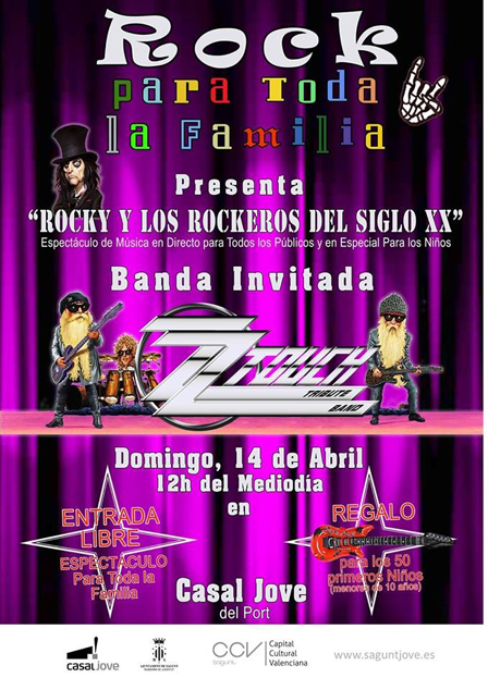 Este recorrido didáctico y gratuito por la música rock está dirigido, es especial, para los más pequeños y contará con la mascota Rocky y los rockeros del siglo XX. Después actuará el grupo ZZ TOUCH (con un tributo a la banda estadounidense de blues y hard rock ZZ TOP).
