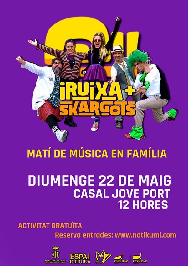 El Casal Jove de Puerto de Sagunto acogerá este domingo, 22 de mayo, a partir de las 12:00 horas una mañana de música en familia a cargo de los grupos Iruixa y Skargots.