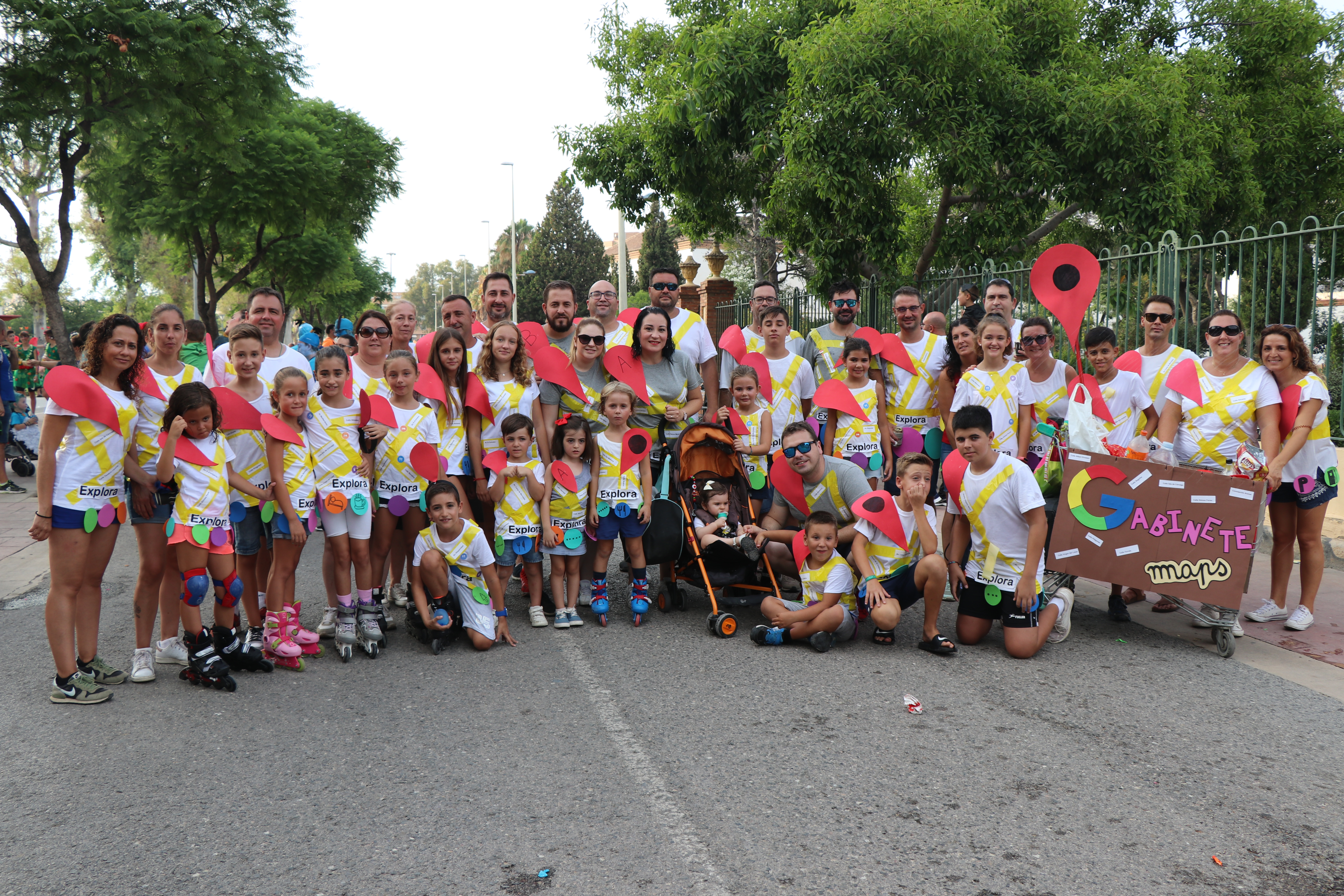 A las 18.30 tuvo lugar la concentración de todos los peñistas en la calle Doctor Fleming, junto al Triángulo Umbral, donde ultimaban los detalles de sus disfraces y las coreografías y preparaban la música, el confeti y los caramelos que lanzarían al público. A continuación, a las 19.30 horas, comenzaba el recorrido por la avenida 9 de Octubre hasta llegar al recinto ferial.