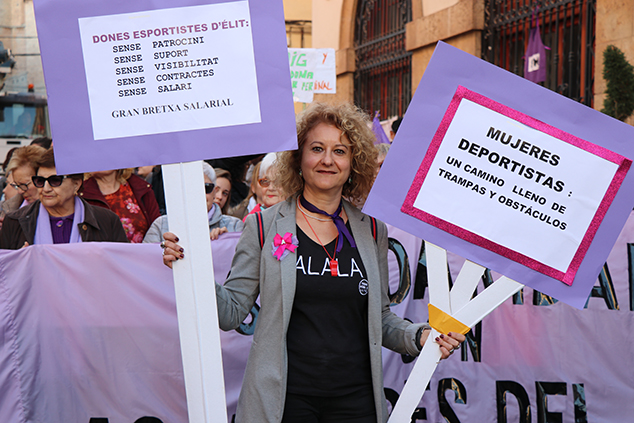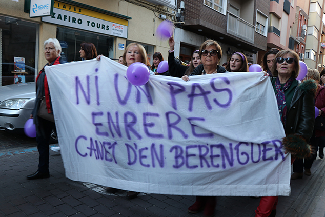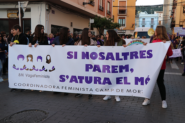 La ciudadanía de la comarca se sumó a las reivindicaciones de la Coordinadora Feminista del Camp de Morvedre en la manifestación que tuvo lugar la tarde del 8 de marzo con motivo del Día Internacional de la Mujer y como colofón al día de huelga feminista. Hombres y, sobretodo, mujeres de todas las edades se unieron en una concentración que recorrió el centro histórico de Sagunto en la que predominaba el color morado en la ropa, banderas, pelucas y globos para manifestar su apoyo a la causa feminista por la que se demandaba, entre otra cosas, la igualdad plena entre hombres y mujeres en todos los ámbitos o la repulsa a la violencia de género.