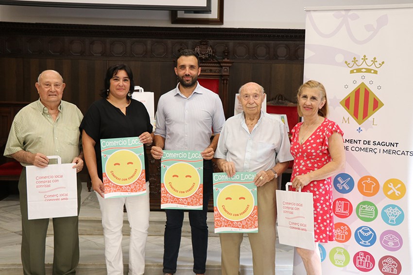 Hoy, en el salón de plenos del Ayuntamiento de Sagunto, se ha presentado la campaña con la participación del alcalde de Sagunto, Darío Moreno; la concejala de Comercio y Mercados, Natalia Antonino, y de diversos representantes de las asociaciones de comerciantes del municipio.