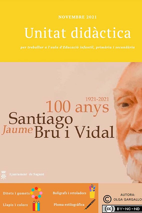 La concejalía de Educación del Ayuntamiento de Sagunto ha presentado la unidad didáctica 100 anys, Santiago / Jaume Bru i Vidal, creada para trabajar la figura del cronista, historiador y poeta saguntino en aulas de Educación Infantil, Primaria y Secundaria.