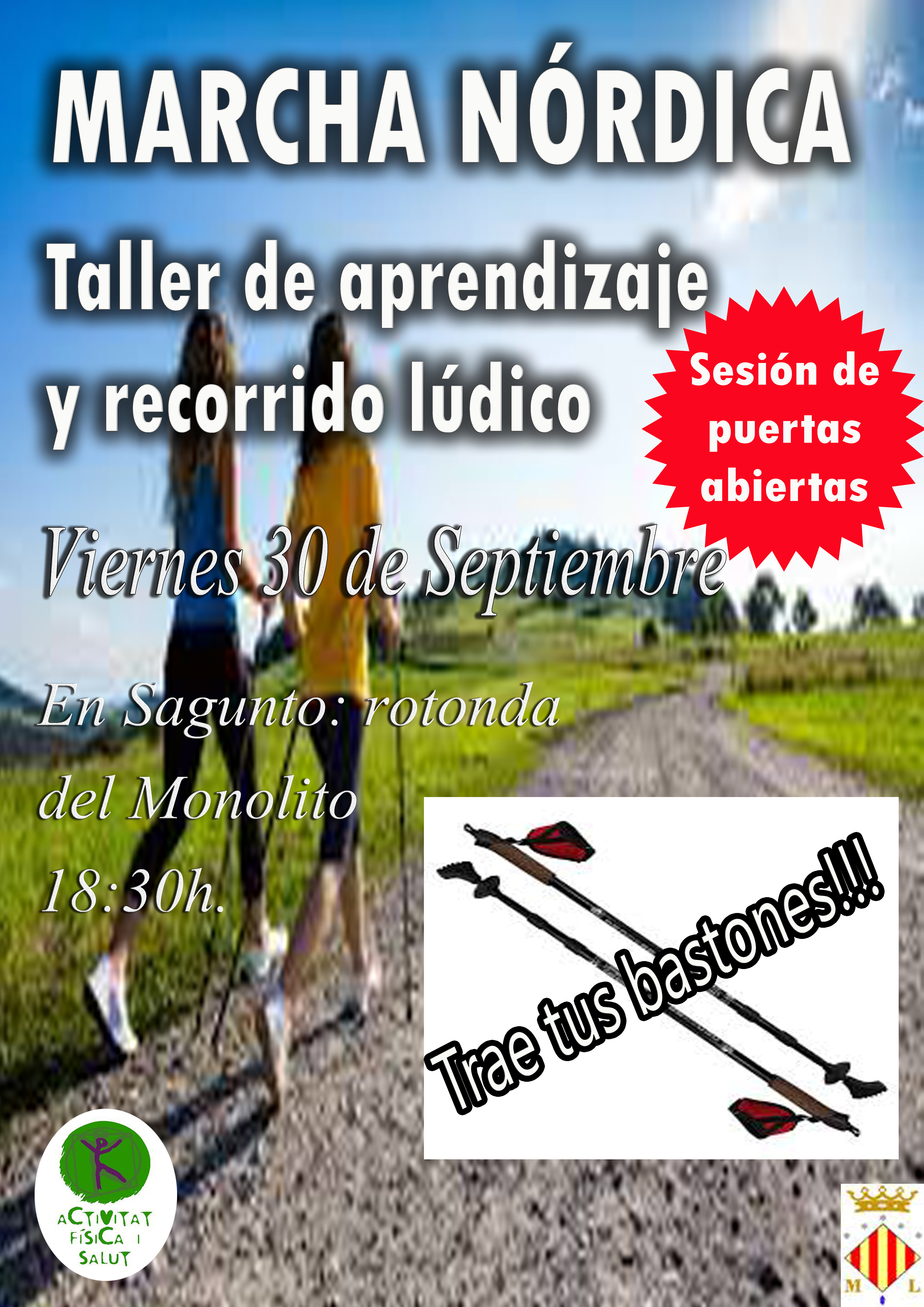 La delegación de Deportes del Ayuntamiento de Sagunto ha organizado un taller gratuito de marcha nórdica para el viernes, 30 de septiembre, a las 18.30 horas, en la rotonda del monolito de Sagunto.