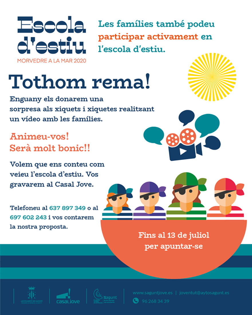 La Escola d’Estiu, uno de los principales proyectos de la concejalía de Juventud e Infancia del Ayuntamiento de Sagunto, ha lanzado dos iniciativas para generar comunidad, involucrar a las familias y tener un efecto multiplicador más allá de las aulas y los patios de los colegios en que se está celebrando durante junio y julio. Por ello, este año, desde el departamento, se ha puesto en marcha dos iniciativas pensadas en ese empeño de sumar complicidades.