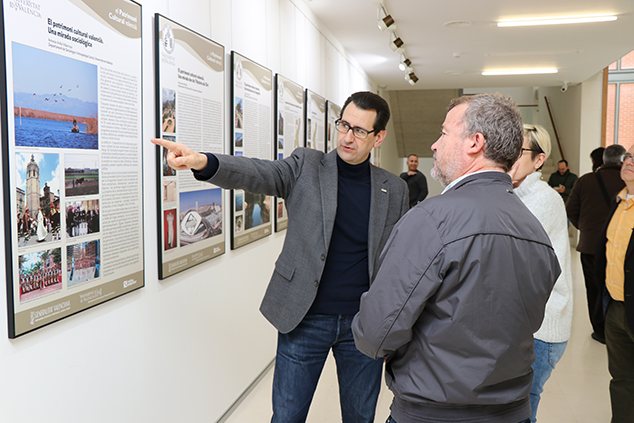 “quería hablar de lo que es el patrimonio cultural para el conjunto del país valenciano. En la exposición verán que hay cartografías muy detalladas de distintos elementos del patrimonio porque entendemos que el patrimonio no se entiende sin conocer el territorio. Saben ustedes que el patrimonio cultural obedece a tres dimensiones: la historia, la función social y la funcionalidad. De hecho el patrimonio que se recoge en los distintos paneles obedecen a estas tres condiciones, hay un componente histórico, todo el patrimonio que tenemos aquí es histórico y en un territorio determinado. En segundo lugar obedece a una función social porque los valencianos son conscientes del valor patrimonial que tienen los elementos de la tipología que se recogen en estos paneles y, finalmente, la funcionalidad; Cada uno de los elementos que aparecen tuvieron en su momento una función determinada. Esas tres dimensiones lógicamente representan el patrimonio cultural valenciano.