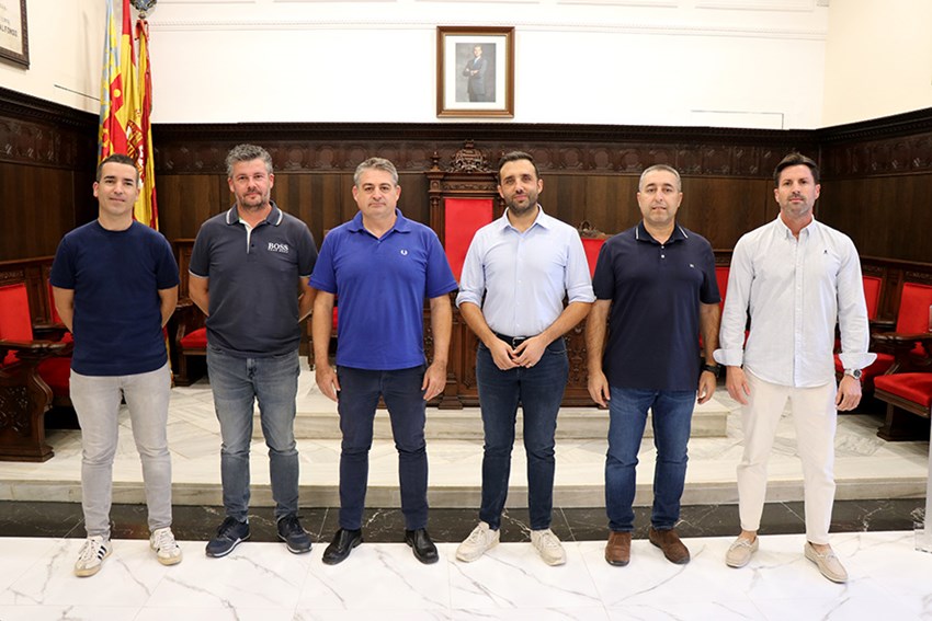 Esta tarde, el alcalde de Sagunto, Darío Moreno, y el concejal de Actividad Física, Salud y Deportes, Javier Timón, se han reunido en el Ayuntamiento con la nueva directiva del CD Acero. Por parte del club han asistido el presidente, José Luis Pradas, y otros miembros del equipo directivo. La reunión ha sido un primer contacto para presentarse y abordar las necesidades del club.