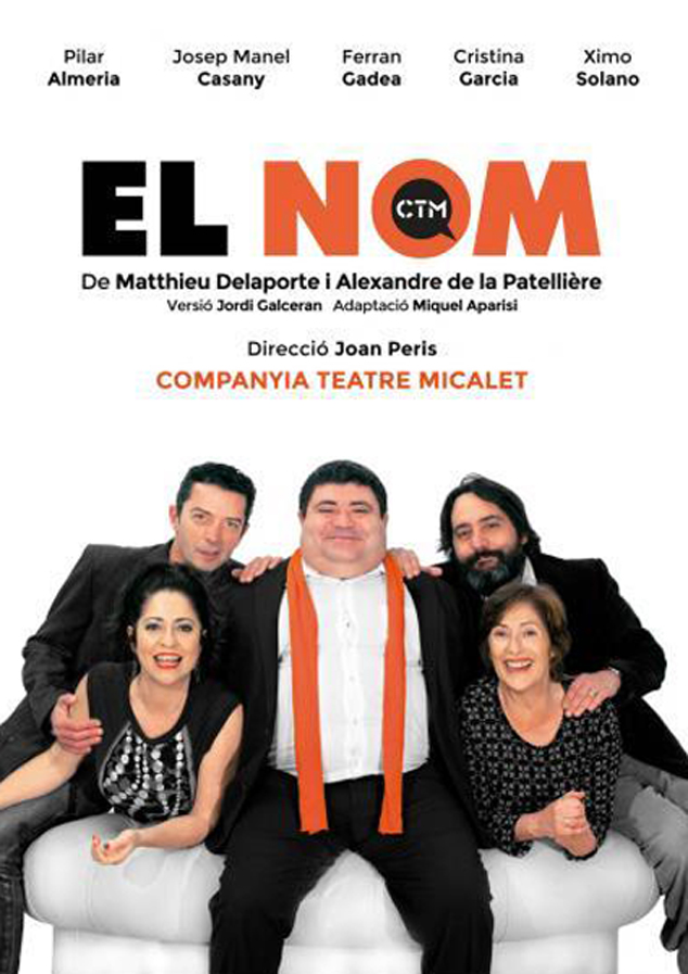 El Nom, es una adaptación de la obra francesa homónima escrita por Matthieu Delaporte y Alexandre de la Patellière, título de una comedia teatral. Esta obra está bajo la dirección de Joan Peris, protagonizado por Pilar Almeria, Josep Manel Casany, Ferran Gadea, Cristina Garcia y Ximo Solano y adaptación al valenciano por Miquel Aparisi.