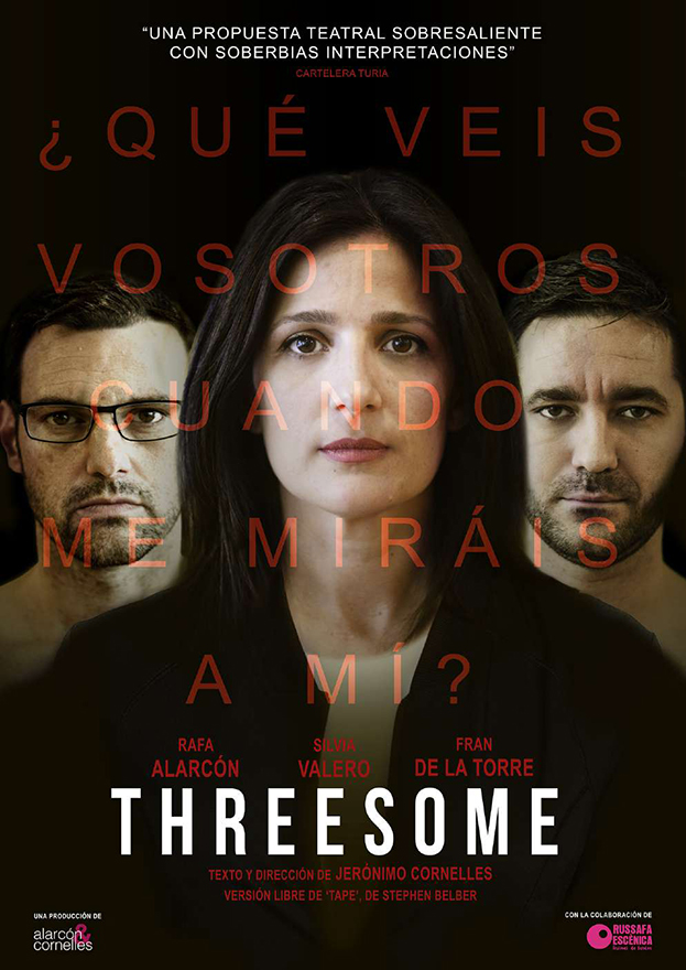 Threesome, de la compañía Alarcón&Cornelles, llega a la Casa Municipal de Cultura de Puerto de Sagunto el próximo viernes, 16 de abril, a las 19.30 horas. El espectáculo tendrá una duración de 90 minutos, la entrada tiene un precio de 7 euros y está destinada a público mayor de 14 años. Se trata de una tragicomedia negra en castellano.