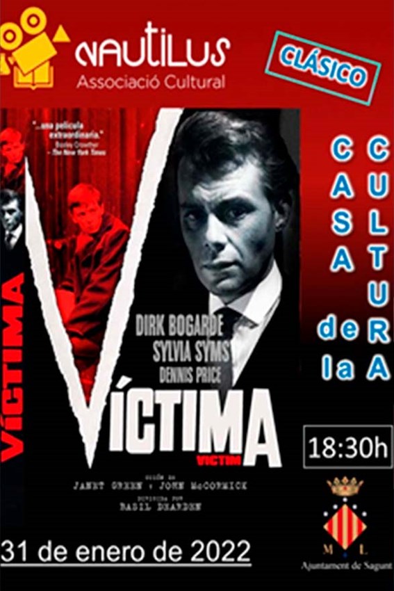 La Asociación Cultural Nautilus ofrece una nueva proyección enmarcada dentro del ciclo dedicado al cine clásico. Se trata de la película clásica Víctima, dirigida en el año 1961 por el británico Basil Dearden. El evento, que cuenta con el apoyo de la delegación de Cultura del Ayuntamiento de Sagunto, tendrá lugar hoy, lunes, a las 18.30 horas en la Casa Municipal de Cultura. Este drama tiene una duración de 100 minutos, el aforo será limitado y la entrada, gratuita.