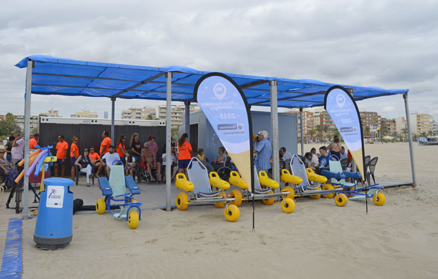 La playa de Puerto de Sagunto, de 1.200 metros de longitud, cuenta con un punto accesible que desarrolla su actividad del 13 de junio al 15 de septiembre, de lunes a domingo, de 11 a 14 horas y de 16 a 19 horas. Concretamente, ocho voluntarios prestan sus servicios diariamente en la playa de Puerto de Sagunto y dos lo hacen en la de Almardà. Ellos son los encargados de ayudar a las personas con movilidad reducida a bañarse. Además, existe un servicio de “Bibliomar” para los más pequeños. Cabe destacar que la playa de Puerto de Sagunto recibe usuarios de toda España y de otros países europeos como Francia o Suiza. El promedio de baños es de veinte diarios. Se trata de un servicio que se presta desde hace más de catorce años en Puerto de Sagunto y alrededor de diez en Almardà.