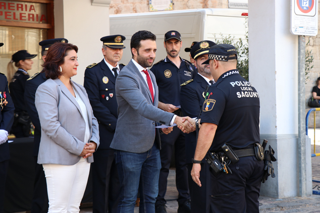 El comisario principal jefe de la Policía Local de Sagunt, Rafael de Manuel, ha manifestado en su discurso que ser Policía Local es una elección personal “impulsada por una vocación clara de ayuda a las personas para procurarles seguridad y atención”. De Manuel ha declarado que pese a que en alguna ocasión los agentes sienten desaliento o no ven reconocido el esfuerzo y trabajo que realizan, “este es el momento de agradeceros todas y cada una de las acciones y esfuerzo individual y de mostrar mi orgullo más sincero por la profesionalidad que estáis demostrando en el servicio diario para ofrecer una mejor organización del servicio”, además de agradecer a aquellos compañeros que desde otras unidades optimizan su rendimiento global.
