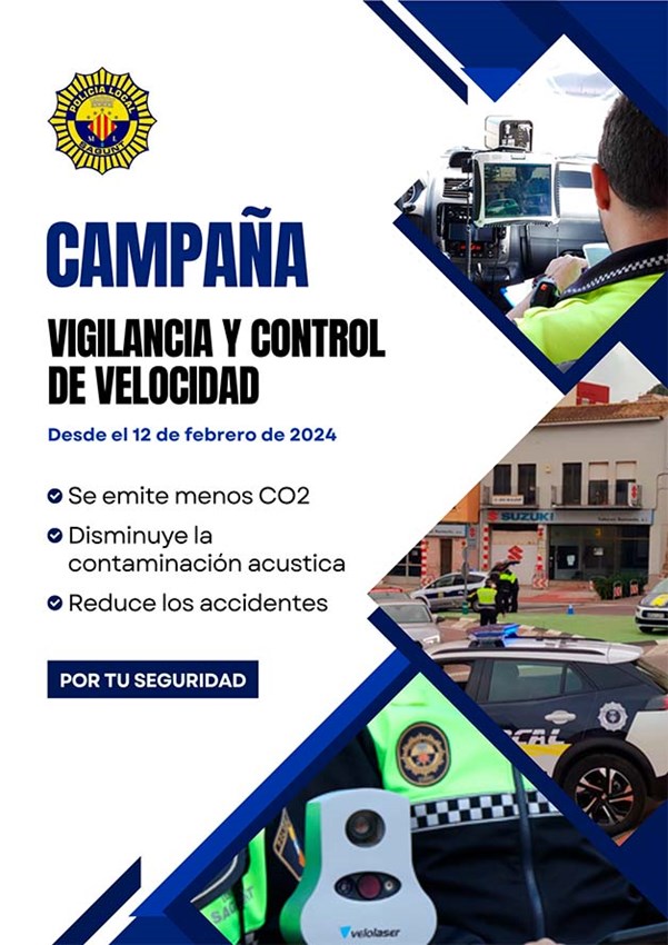 La Policía Local de Sagunto vuelve a realizar una nueva campaña de vigilancia y control de la velocidad, que se iniciará el próximo lunes, con el objetivo de concienciar a los conductores y conductoras que el cumplimiento de la normativa en materia de velocidad es un beneficio para todos los usuarios y usuarias de las vías y, por extensión, para toda la sociedad.