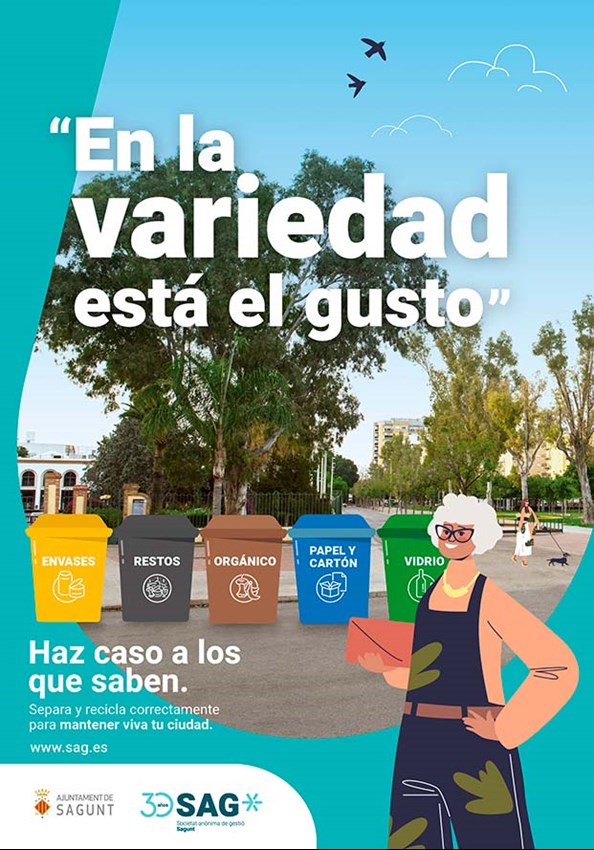 La Societat Anònima de Gestió de Sagunto (SAG) ha lanzado una nueva campaña a favor del reciclaje con el eslogan Haz caso a los que saben con el objetivo de concienciar a la ciudadanía sobre la importancia de separar los residuos correctamente mediante el establecimiento de un vínculo emocional con los habitantes de la localidad, recurriendo a expresiones y enseñanzas de las personas más mayores.