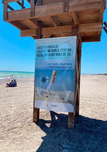 Colocadas en las torres de vigilancia de los socorristas de las playas del Puerto de Sagunto y Almardá, 12 lonas recogen mensajes dirigidos en primera persona a los usuarios. ‘Esta colilla no habla, pero no recogerla dice mucho de ti’, ‘Esta lata no habla, pero dejarla en la arena dice mucho de ti’ y ‘Esta duna no habla, pero destruirla dice mucho de ti’ pretenden dar un toque de atención sobre los daños que este tipo de acciones pueden ocasionar en nuestras playas.