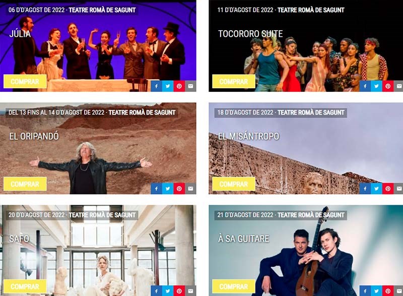 Teatro, música, danza y circo se darán cita entre el 4 y el 28 de agosto en un festival que presenta ocho espectáculos en nueve funciones que se desarrollarán en el Teatro Romano y otras 14 propuestas que tendrán lugar en otros espacios del municipio dentro del marco del Off Romà. Serán 22 espectáculos en total. Por otra parte, se ha presentado también el cartel del festival para este 2022, que ha sido elaborado por el diseñador Eusebio López. Esta edición cuenta con un presupuesto de más de 637.000 euros, además de las aportaciones en personal y servicios del Institut Valencià de Cultura y del Ayuntamiento de Sagunto, alrededor de un 38 % más que la edición de 2019, antes de la pandemia.