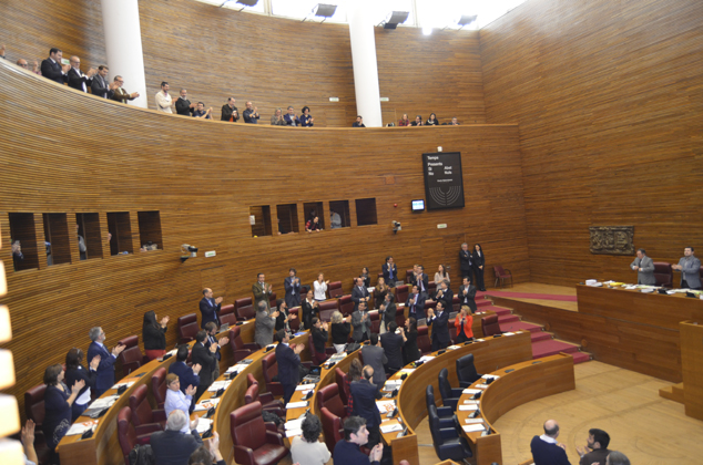 Los diputados han aplaudido en pie la declaración mirando a la delegación saguntina presente en el hemiciclo