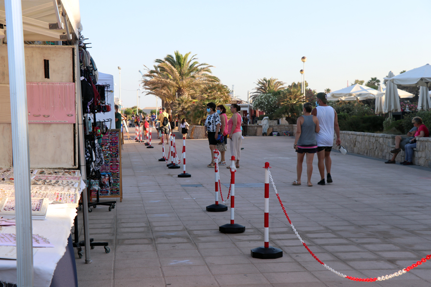 Según explicó la delegada de Comercio y Mercados, Gloria Parra, que asistió ayer a la inauguración junto al alcalde de Sagunto, Darío Moreno, y al concejal del Equipo de Gobierno, José Manuel Tarazona, para celebrar este mercado «hemos buscado una solución en la que todas las administraciones implicadas, tanto el Ayuntamiento como Costas y Sanidad, estemos de acuerdo y hemos llegado a la conclusión que para controlar el aforo y guardar las distancias de seguridad sanitaria dentro de las propias paradas la solución era poner una especie de baliza con cadenas que actúa a modo de barrera». De este modo, como argumentó la concejala, «la gente que pasee por la zona accederá a los puestos atravesando esas balizas por los puntos de acceso, sin impedir pasear por el paseo libremente a quien lo desee».