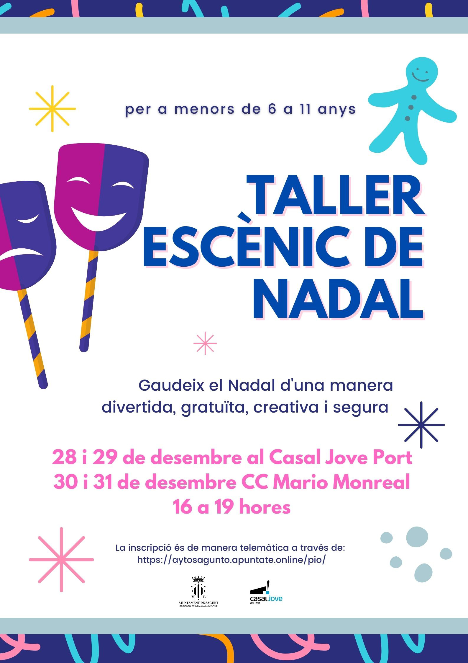 La Concejalía de Juventud e Infancia del Ayuntamiento de Sagunto consciente de la importancia de la educación en el tiempo libre, ha organizado el Taller Escénico de Navidad para el alumnado de primaria de 6 a 11 años interesado en el juego dramático. De este modo, lo harán de una manera divertida, creativa y segura.
