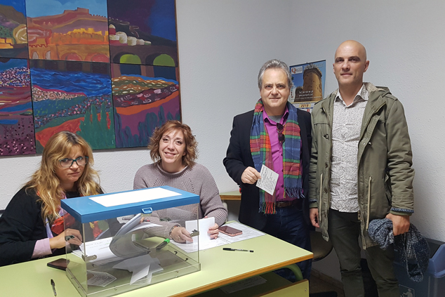 El concejal de Educación, José Manuel Tarazona (segundo de la derecha), votando en un colegio