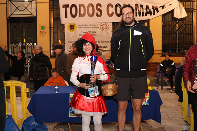 La carrera ha contado con la participación del alcalde de Sagunto, Darío Moreno, y del delegado de Deportes, Javier Raro, así como de los concejales de la Corporación Municipal, Javier Timón, José Manuel Tarazona, Guillermo Sampedro, Cosme Hernández y Sergio Muniesa. Las concejalas María José Carrera, Natalia Antonino y Asun Moll también han estado presentes en la celebración de esta competición festiva y solidaria. Una vez han llegado todos los participantes a la meta, el alcalde y los concejales han entregado los premios al primer clasificado masculino, Francesc Cabrero, y a la primera clasificada femenina, Luna Escrich, así como a los 3 mejores disfraces individuales y grupales.