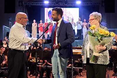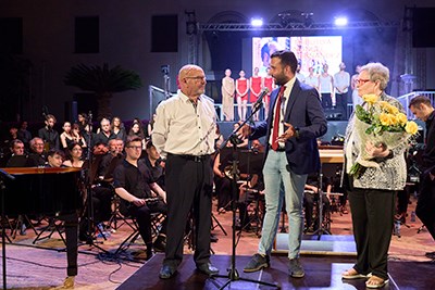 El alcalde de Sagunto, Darío Moreno, intervino en el acto para dar un reconocimiento a Manuel Hernández por su extensa trayectoria en el mundo de la música y como cantante de la mítica orquesta Nueva Fase. Asimismo, la Unión Musical Porteña le entregó una placa conmemorativa.