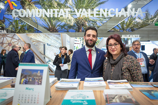 El alcalde de Sagunto, Darío Moreno, y la concejala de Turismo, Natalia Antonino, en Fitur 2020