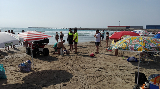 Los servicios municipales de Playas han atendido a tres mujeres durante el fin de semana en la playa de Puerto de Sagunto. Una de ellas, de 40 años y natural de la localidad francesa de Burdeos, fue atendida el sábado, 11 de agosto, a las 12.20 horas por la Policía Local de Playas y por el médico y el resto del equipo de rescate de la posta T2 a unos 20 metros de la orilla y la trasladaron en ambulancia al hospital ya que estaba indispuesta y padecía una enfermedad cardíaca.
